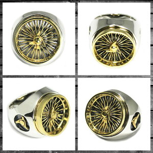 ) リング最大幅:約24mm,最大厚:約7.5mm,ホイール直径:約20mm "WIRE WHEEL RING" その名の通りアメ車に欠かせないワイヤーホイールを職人技で忠実に再現し、 中央部のノックオフ(スピンナー)を豪華に両サイドにも装飾したスペシャルなリング!! 在庫切れしている商品もすべてオーダー可能です。
